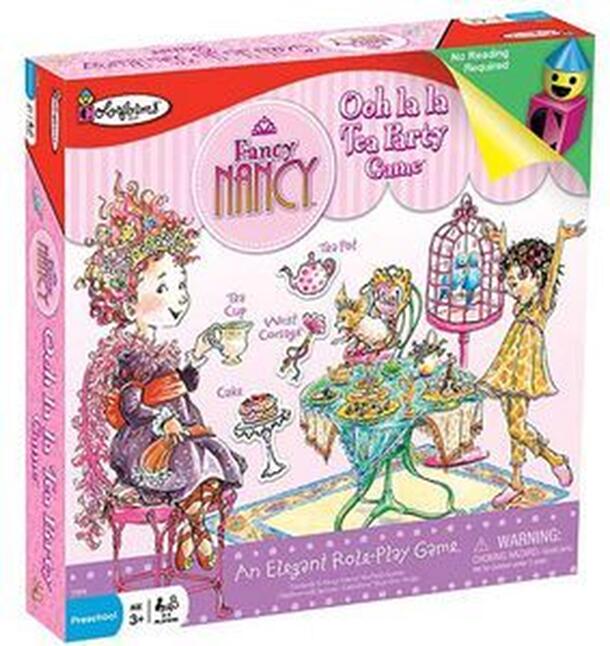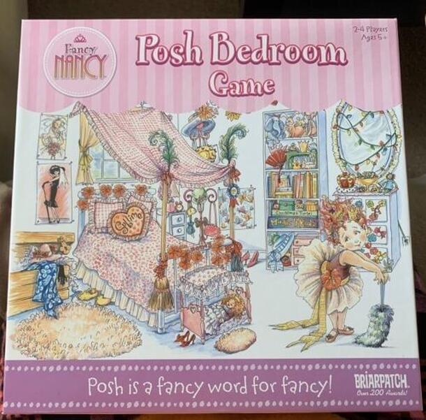 Players compete to help Fancy Nancy transform her bedroom from plain to posh! Players bring in her boas, ribbons, tiaras and other fancy accessories....the first player to complete the posh bedroom makeover,wins! Based on the best selling children's picture books by Jane O'Connor. 2 to 4 players. Game Contents: 1 Color Die, 4 Bedroom Game Boards,40 Posh...