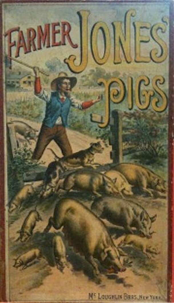 Card game featuring farm animals. The first player draws a card and makes sure no-one else can see it. It will be one of ten possible animals. The other player or players can ask seven specific questions which will be answered with a "Yes" or "No". A couple of question examples: Good Household Pet? Meat we eat? Every question asked scores the card-holder 1...
