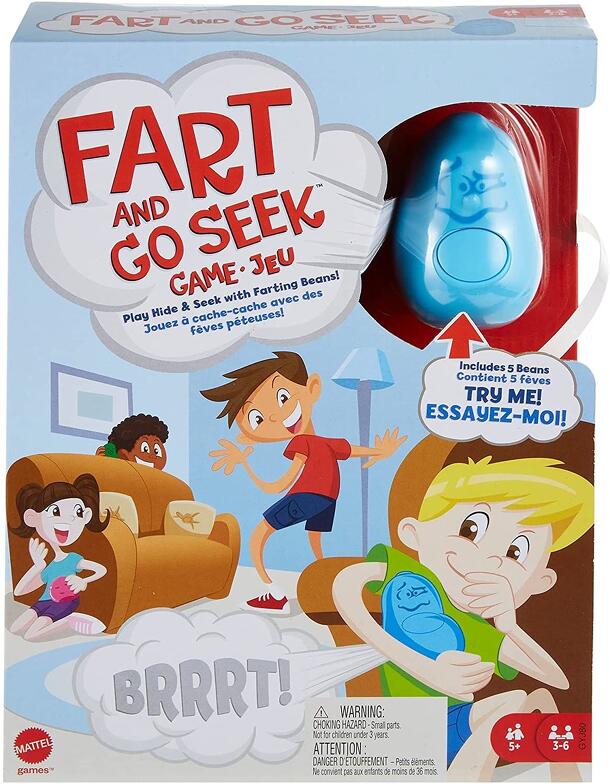Fart and Go Seek takes the classic playground game and adds electronic farting beans. One player is the Seeker and the others are Hiders. As a Hider you are randomly dealt a bean. It might be a silent bean, but it also might be one of the farting kind. Everyone starts at a predetermined base, then presses the button on their bean and runs off to hide while...