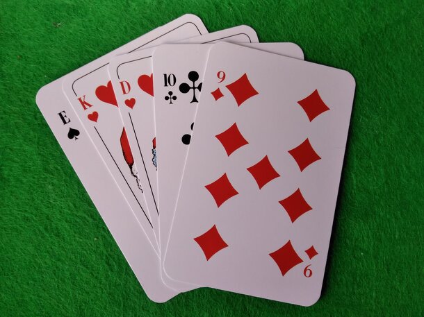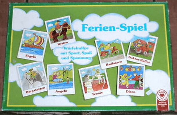 Players roll and move over a board. They can take up cards with certain pictures on the corresponding squares of the board. When a player meets another player, he or she can take a card from him/her (the loser goes back to the start). A cloud square means a card can be stolen from anyone. There are eight pairs of two cards each - when a player has both...