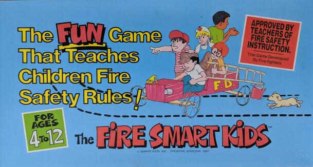 This is a roll-and-move game intended to teach children about fire safety. On your turn, you roll the die and move your player piece the corresponding number of spots on the board. If the spot you land on has an action, you must take that action. Actions include: Lose a Turn, Go Back, Go Ahead, and Fire Smart Cards. When you land on a Fire Smart Cards...
