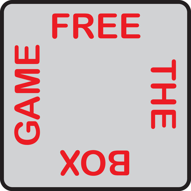 The board consists of a 3x3 felt grid on which move eight wooden tokens (four of each of two colours). You are dealt five "frame pattern" cards *after* initial deployment of your pieces. Yellow begins by moving any one of his pieces to the empty space on the grid. Black does the same in turn. Every time the pattern formed by your pieces matches that shown...