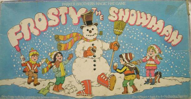 The object of this game is to bring Frosty back to life by being the first player to reach his Magic Hat. Before you can do this, you'll have to complete the rest of his costume by collecting 6 Costume Cards: mittens, boots, scarf, broomstick, corncob pipe and eyes of coal. Using a spinner for movement, you first travel along the outer track. If you land...