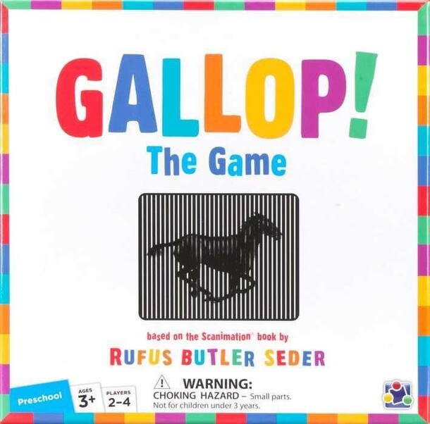 From the Publisher: Which animal will win the race? Open the magical Scanimation door to see who will move on each round. You’ll be strutting, galloping, and fluttering along as you race around the track. Guess correctly to win! Based on the popular book by Rufus Butler Seder. - A first game for preschoolers just learning to play games - Players can hop...
