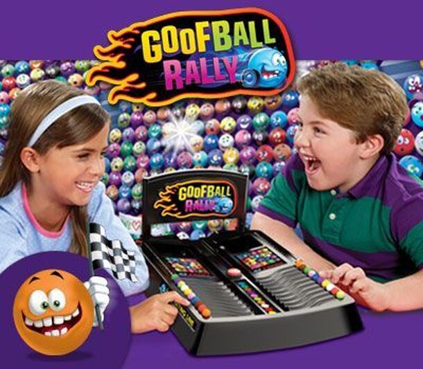 Publishers Description: "It’s time for Goofball Rally, the fast-paced, color-matching marble race! Place your goofballs on the starting line and get ready to go. On your mark, get set…roll! Launch your goofballs one by one down the winding race tracks. When all of your goofballs have crossed the finish line, hit the red button. The first player to score 20...