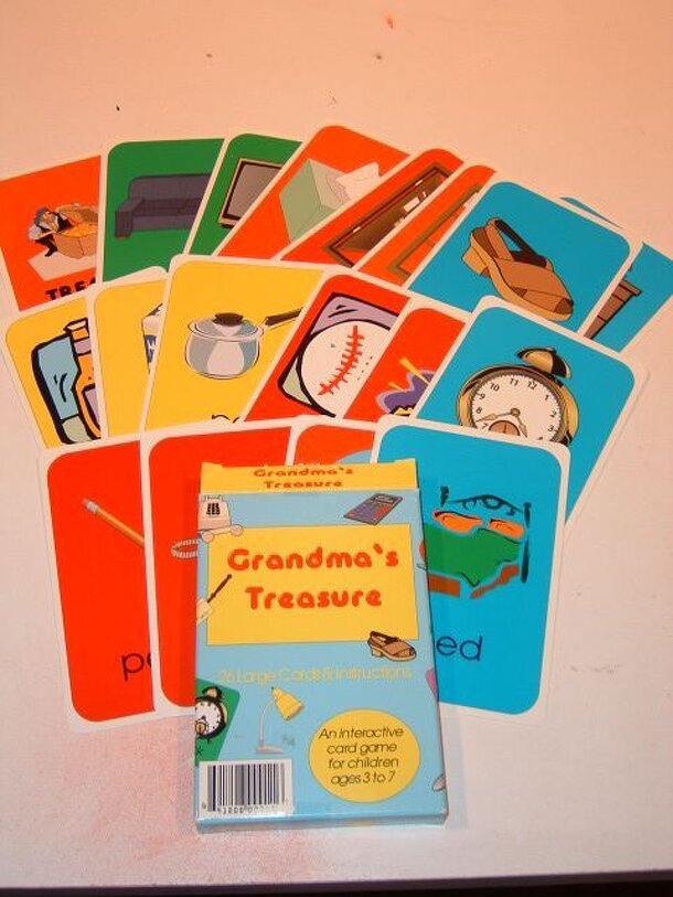 This is a deck of cards that can be used to facilitate a treasure hunt around your house. The game consists of a deck of 26 cards; 1 Treasure card and 25 cards with images of objects that you would typically find around your home: Blue cards: shoe, dresser, clock, bed; Orange cards: tissue, window, vacuum; Green cards: couch, tv, table, lamp, books, chair;...