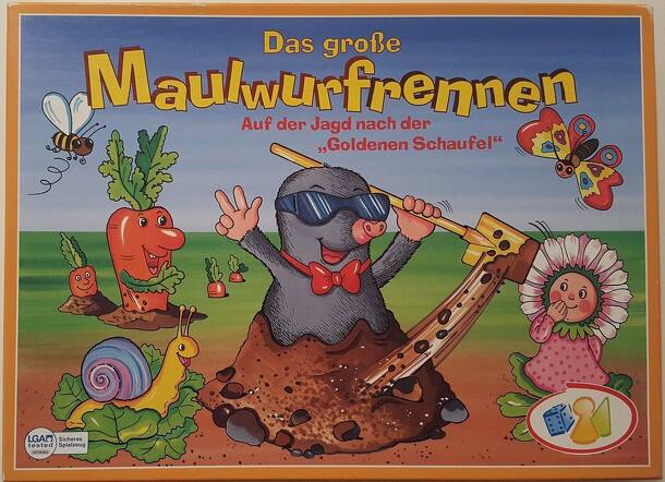 All Moles are trying to get the golden shovel to become Mega Mole of the Year. To defy all dangers, they first try to find their way into the vegetable garden of gardener Teitze. It starts in the mole building, where all players place their mole. The tunnel has eleven event fields whose meaning should read aloud. At the beginning the player rolls the dice...