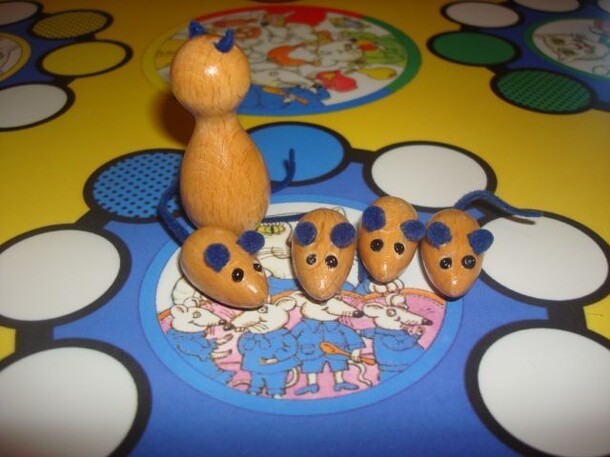 The players are mice and try to collect cheese. There are three places on the board where cheese can be obtained. On one, the players can draw cards from a stack. They can draw as long as they want to, but when they draw a cat card, they get nothing. On another field, they can roll dice to venture into a mouse trap (either getting plenty of cheese or...