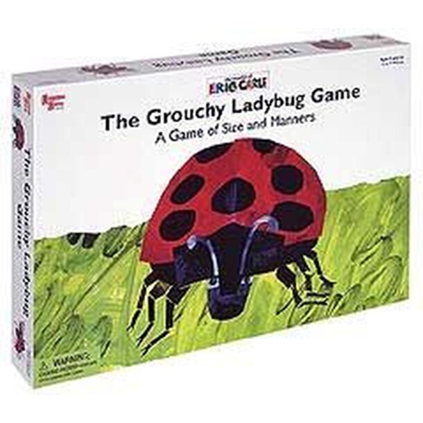 From the Publisher: The Grouchy Ladybug Game brings the Eric Carle book alive with a whale of a game board complete with a moving whale tail. Children move their ladybugs through the game, practicing manners, meeting animal friends and gathering a nice meal! Each player starts with a grouchy, hungry ladybug and an empty leaf. Players move around the board...