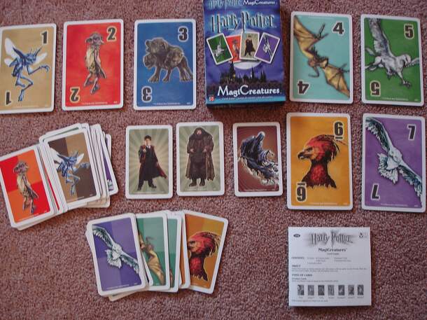Collect Point Cards by trading creature cards with other players, until you gather six (6) of a kind. When the last Point Card is taken, the player with the highest score wins. This game contains 7 types of Harry Potter creatures, each with a point card valued at a single value from 1 thru 7, and each with 6 cards for play (no point value). Therefore...