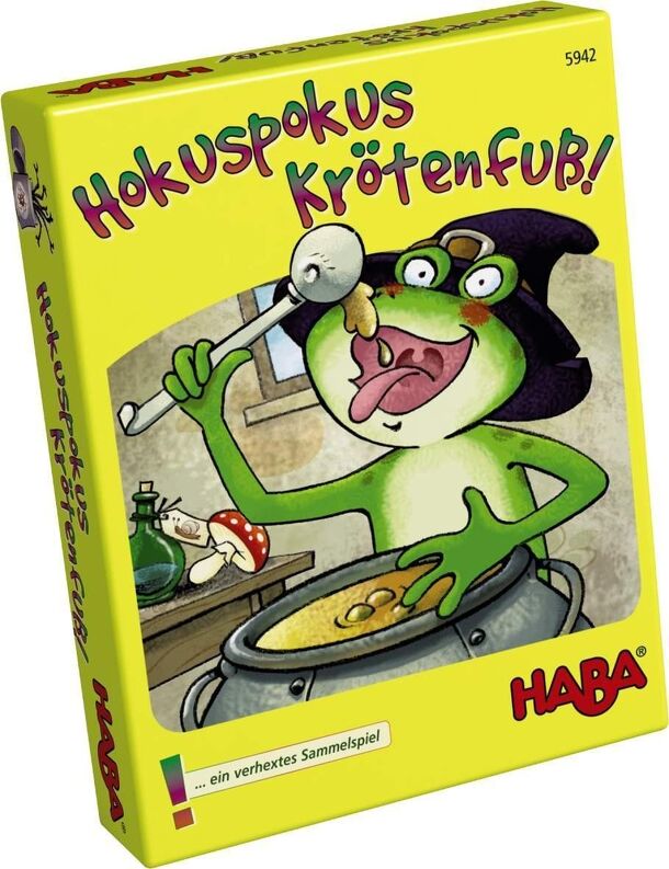 There are 5 different ingredients and the raven cards what count as a jokers in this game. The object of the game is to collect the most cards in one type of ingredient. In start each player gets 3 cards and the rest of the cards are placed to 5 pile. Put the frog aside to any pile. In his turn player rolls the dice to move the frog as many steps as the...