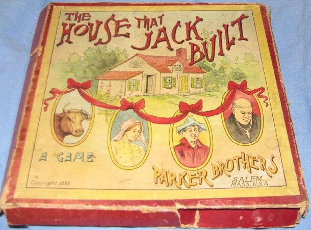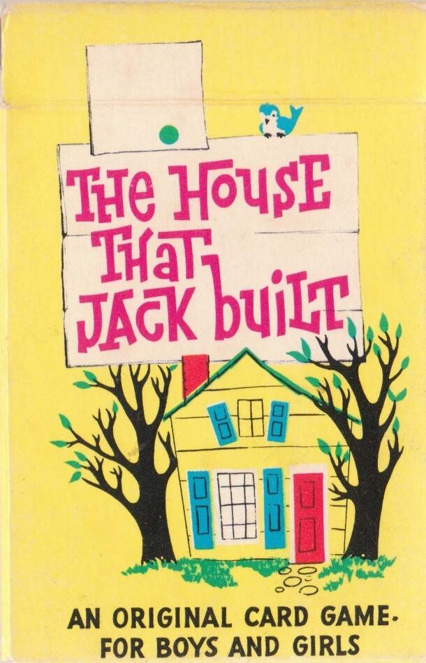 Try to play all your cards in the same order as the lines of The House That Jack Built. Deal all the cards, one at a time. Some players may have more. Whoever is at dealer's left begins by putting a House card (1) in the middle and saying line 1: “This is the House that Jack built." Then, if he can, he puts a Malt card (2) on top and says line 2...
