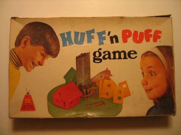 The object of this children's game is to be the last player with his house standing after the wolf has destroyed the other houses. Based loosely on the Big Bad Wolf children's story, each player has a pig inside either the straw, wood, or brick house. At the beginning of the game, each player secretly drops a metal pin into one of the 12 holes belonging to...
