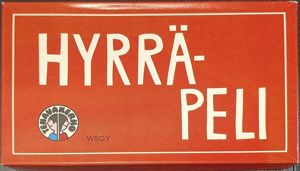 Hyrräpeli is a spinner game for children to learn to recognize in which category a certain item belongs. Categories are crockeries, vehicles, buildings, animals, plants, tools, clothes and furniture. At start of the game every player gets six cards. Rest of the cards are left as a draw deck. On your turn you spin the spinner. The side shows the category...