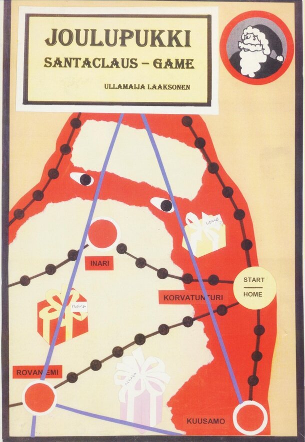 "Santa Claus is already a very old man and he also has a habit of forgetting things. Sometimes Santa Claus gets lost and then Mother Christmas becomes worried. Once again Santa Claus has gotten lost. Your task is to find Santa Claus and take him back to Korvatunturi to Mother Chistmas' gentle care." Simple roll and move game for 2-6 players. Players roll...
