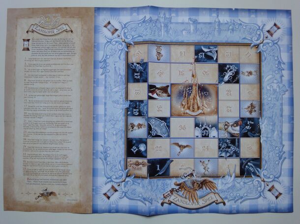 Join Klaas Vaak (the Sandman, who brings on dreams and sleep by sprinkling sand into the eyes of the children) and travel the world of the Efteling, the stars, and the moon, on the back of the owl Oehoe Houdoe. But beware! Klaas Vaak has to be back in his sandcastle before sunrise. You get 20 minutes of playtime. Grab a die and for every player a pawn....