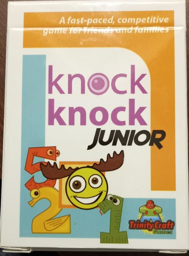 A fast-paced, competitive game for friends and families. This is a reimplentation of Knock Knock, but with fewer suits and a bit less take-that. It is, as described, a family game to be played with kids. The remainder of the description is via the publisher's description of Knock Knock: In this card game players compete to be the first to get rid of their...