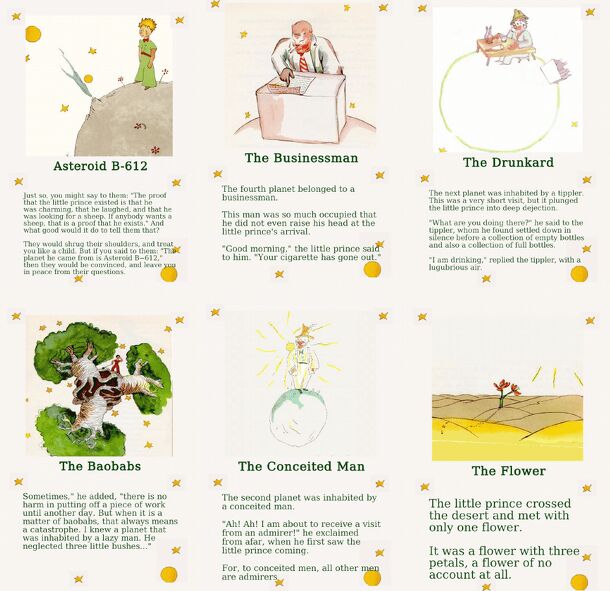 A "The Little Prince"-themed children's game about matching and remembering shapes and colours. Background story: Antoine, the astronomer, has been talked into stealing the stars of the universe for his planetarium by the evil snake. But the stars are essential for all the inhabitants of the planets. Without their light, plants, animals and people cannot...
