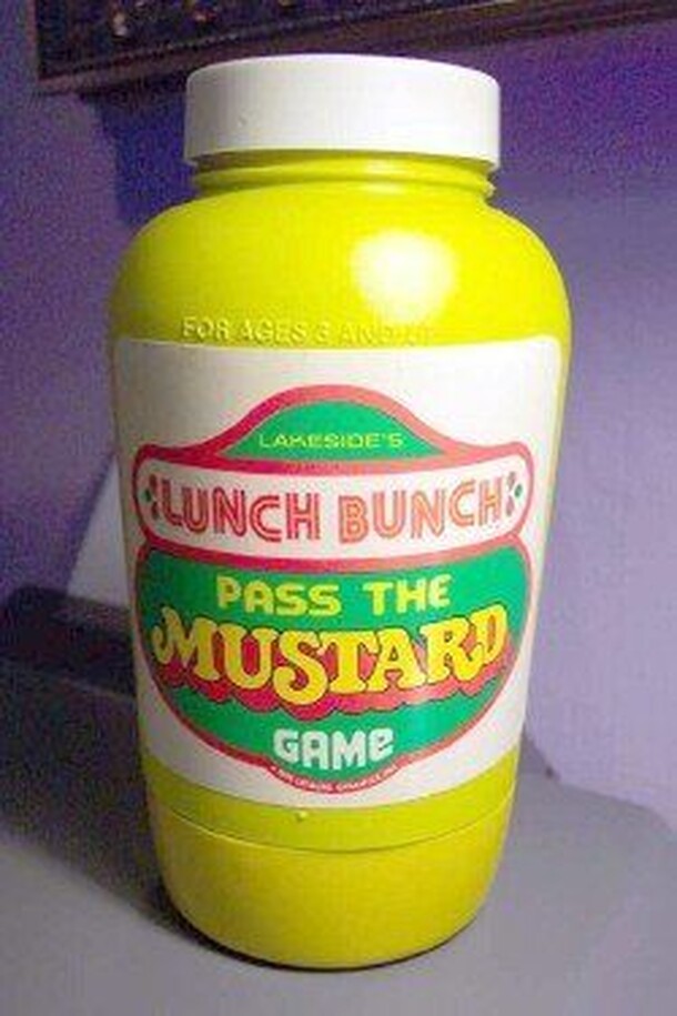 Lunch Bunch: Pass the Mustard is a children's game, made entirely of plastic, except for the rubber band and two magnets that are the heart of the game's suspense. On your turn, you drop a plastic hot dog of one of the available sizes into the "mustard jar". As the bulk of wieners in the mustard jar increases, the rubber band stretches. Once there is...