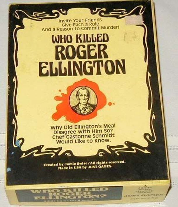 This is one of the Jamie Swise murder-mystery role-playing games published by Just Games. It was later published by Milton Bradley as part of their "Life of the Party" line beginning in 1987. Episode: Who Killed Roger Ellington? The Plot: Post-war America was thriving in 1948, as was murder in a small Massachusetts town. Industrialist Roger Ellington was...