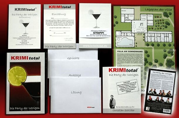 General info on the "Krimi Total" series: Murder mystery games in which players act out their role and try to solve the mystery. The game is played in several rounds; there are discussions, allegations, and at the end of the game everybody has to state who they think the culprit is and what happened. Info on this particular case: This case is aimed at...