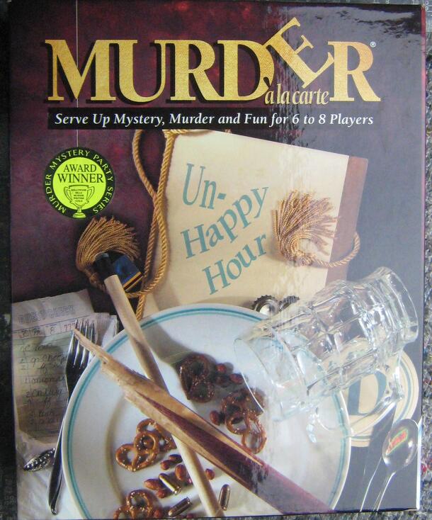 Enjoy a little murder with your dinner........ Murder mystery dinner game for 6 - 8 people Age guide 12 to Adult. Everyone is a suspect when murder is on the menu. And with Murder a la Carte you have everything you need to serve up the perfect murder dinner party. First the invites, you choose which of your friend’s play which devious suspect and invite...