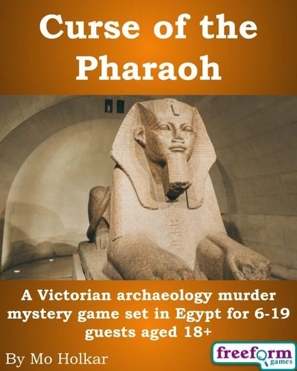 From the Publisher's web site: Curse of the Pharaoh is a murder mystery game for 6 to 19 guests and a host. Join us in Egypt, 1894, and determine the fate of the British Empire in a thrilling evening of mystery and murder. You will be in the middle of the action and it will be up to you to wheel and deal with the other guests. Can you achieve your goals...
