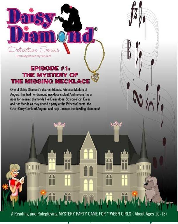 How to Host a Murder styled party game. No audio comes with these games, just clue booklets and party planner. Designed for girls Ages 10-13 The DAISY DIAMOND DETECTIVE SERIES Episode #1: The Mystery of the Missing Necklace One of Daisy Diamond's dearest friends, Princess Medora of Angora, has had her diamond necklace stolen. And no one has a nose for...