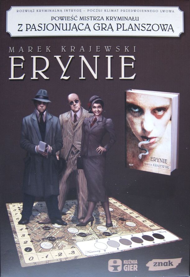 Erynie is a board game based on book under the same title by Marek Krajewski, a popular Polish crime fiction writer. Each player becomes an investigation officer, receives the main suspect accused of a crime and one innocent person. The goal is to find evidence of guilt or innocence. Game is won by a player whose accusations are closest to the truth. At...