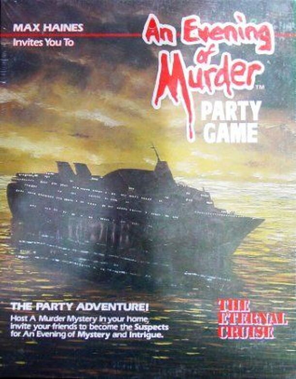 One in the series of "Max Haines Invites You To An Evening of Murder (tm)" party games. Plays like the "How to Host a Murder" series. This particular edition is The Eternal Cruise. From the invitations... Crime Scene: Captain Scott Emery is missing at sea. He disappeared late last evening while inspecting his ship, the Moonlight Princess, on a cruise from...