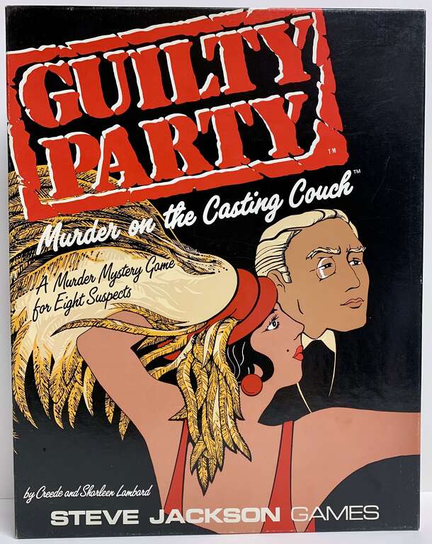 First in Steve Jackson (I)series of adult murder/mystery party games. Not sure if any others followed. Standard issue, very much like How to Host a Murder or Murder Mystery Party line, only no audio tape. However, each invitation includes a mini-newspaper with background information about the murder. The story line: Who Killed the Studio Chief? The date is...