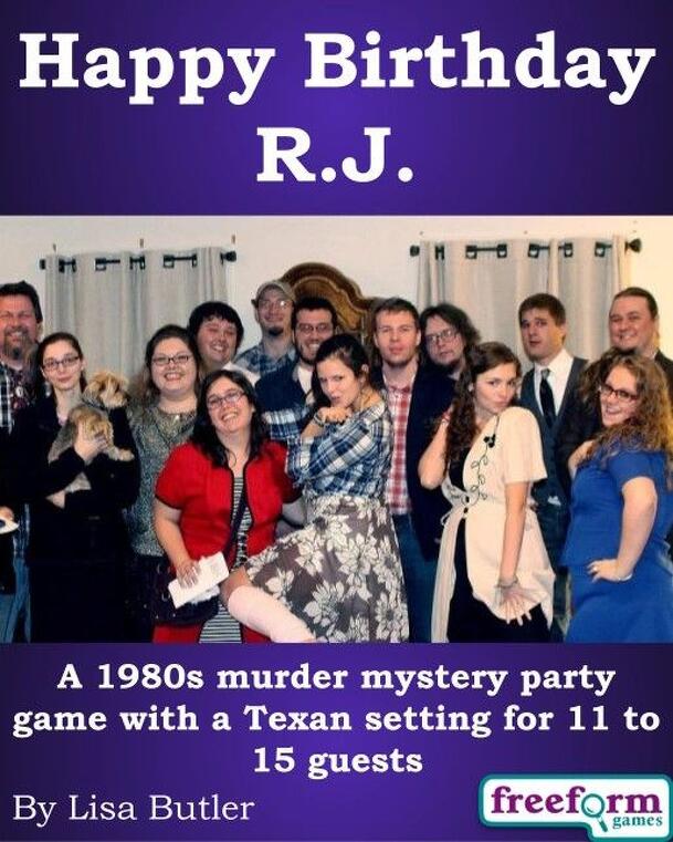 From the Publisher's web site: Happy Birthday R.J. is a dinner party murder mystery game for 11 to 15 guests and a host. Join us in a thrilling evening of scheming, double-dealing and big, big shoulder pads. You will be in the middle of the action and it will be up to you to wheel and deal with the other guests. Can you achieve your goals, keep your...