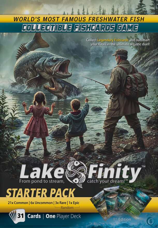 Embark on a journey through serene lakes and vibrant rivers in Lakefinity, a rare card game where strategy meets the beauty of freshwater aquatic life. Entire game library features over 300 fish from around the World and Starting Pack gives you 31 cards: 21 common, 6 uncommon, 3 rare and 1 epic. Only first two types of cards are present in the Starting...