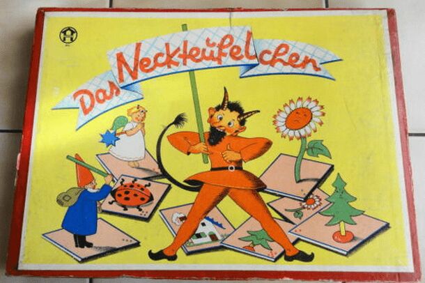 Objective: collect cards scoring most winning points - acting by turn - active player turns the spinner 1 draw a correspondent card if spinner points on a symbol (8 x 4 cards + 1 devil) 2 if all 4 cards of a chosen symbol are gone ==> take the devil (out of the box or from a player) 3 if devil is yours and pointer ends on devil symbol ==> discard a card...