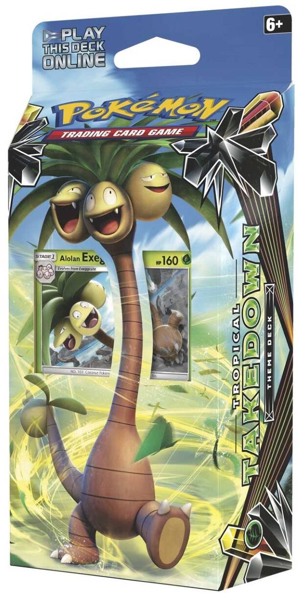 The Tropical Takedown Theme Deck is from the Forbidden Light expansion of the Pokémon Trading Card Game, the sixth expansion in the Sun & Moon series. However, it also contains cards from earlier expansions in the Sun & Moon series. It predominantly focuses on Alolan Pokémon, with the main Pokémon being Alolan Exeggutor. Like other Theme Decks, Tropical...
