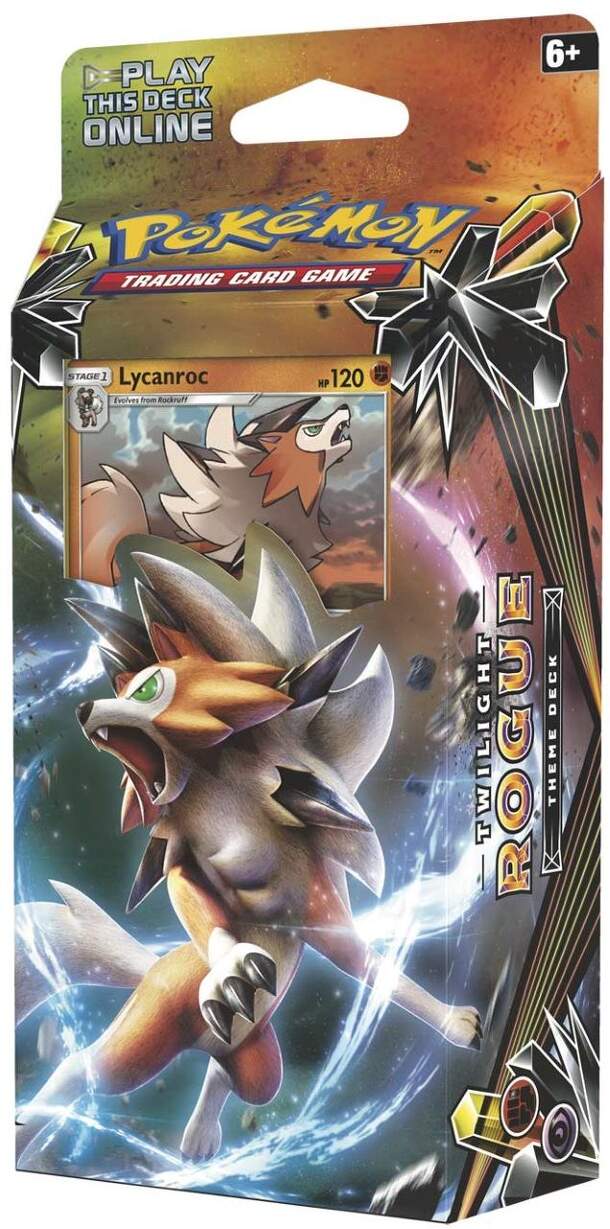 The Twilight Rogue Theme Deck is from the Forbidden Light expansion of the Pokémon Trading Card Game, the sixth expansion in the Sun & Moon series. However, it also contains cards from earlier expansions in the Sun & Moon series. It predominantly focuses on Fighting and Psychic type Pokémon. The main Pokémon is Dusk Form Lycanroc using its Dangerous Rogue...