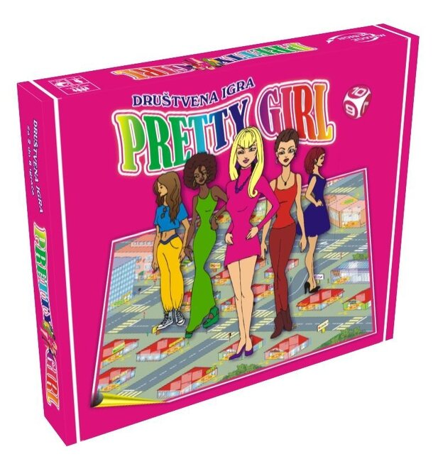 Pretty girl is a simple game for the younger audiences. The game contains: board (58x47cm), dice, 8 figurines, 60+24 counters. On the board is shown part of a city where is a shopping mall. Fields on the board are following streets and sidewalks. In front of stores are marked fields next to which are one or more counters. On the beginning of the game...