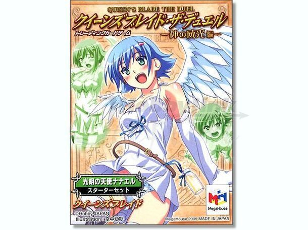 The Queen's Blade series of combat books are reincarnated as a TCG in Queen's Blade: The Duel. In addition to art in the style of the Queen's Blade series, there are rare cards illustrated by famous artists. For the foreseeable future, this is a Japan-only release. Unlike the books, Queen's Blade: The Duel is not licensed from the Lost Worlds system....