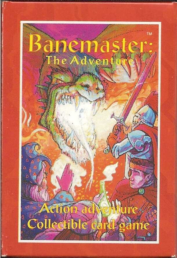 Collectible card game designed by Alexander Duncan, with roleplaying elements sold in starters and boosters. Artwork by Jamie Grant. In 'Banemaster one of the players draws from the green deck and plays the evil Banemaster, the other players draw from the red deck and are sworn to fight the evil in the Banemaster's Castle. During play, each player draws 8...