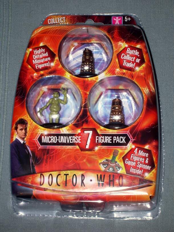 A very simple collectible miniatures game that plays like Top Trumps with a die. Each figure has a number of characteristics with a numerical value. Choose a characteristic, roll the spinner (a die replacement shaped like the TARDIS console) and add the result to the characteristic's value. Your opponent rolls and adds the same characteristic from his...
