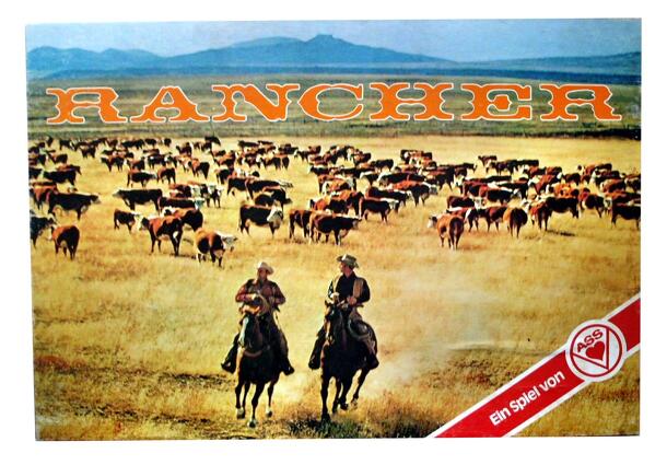 Players are ranch owners buying and selling cattle. You want to get as many cattle as possible to the market in "Beef Town", where the players can sell it. On the way they must cross many dangers and watch out for cattle thieves (but if you land on another player's ranch you may steal some of his cattle instead). The board shows a round trip around the old...