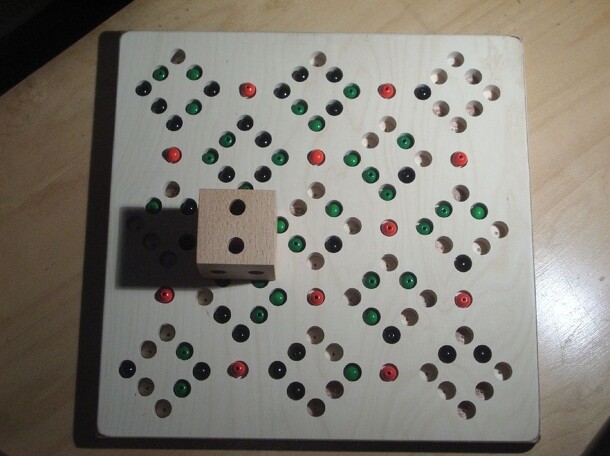 "Diese Gärten, diese Alleen" ("These Gardens, these Avenues") has a board with 13 "gardens" groups of eight holes) and four "avenues" consisting of 24 holes (which are also part of gardens. Two avenues belong to each player). Also contained are wooden pearls and a curious large wooden block. Through each of its sides, two holes have been drilled to the...