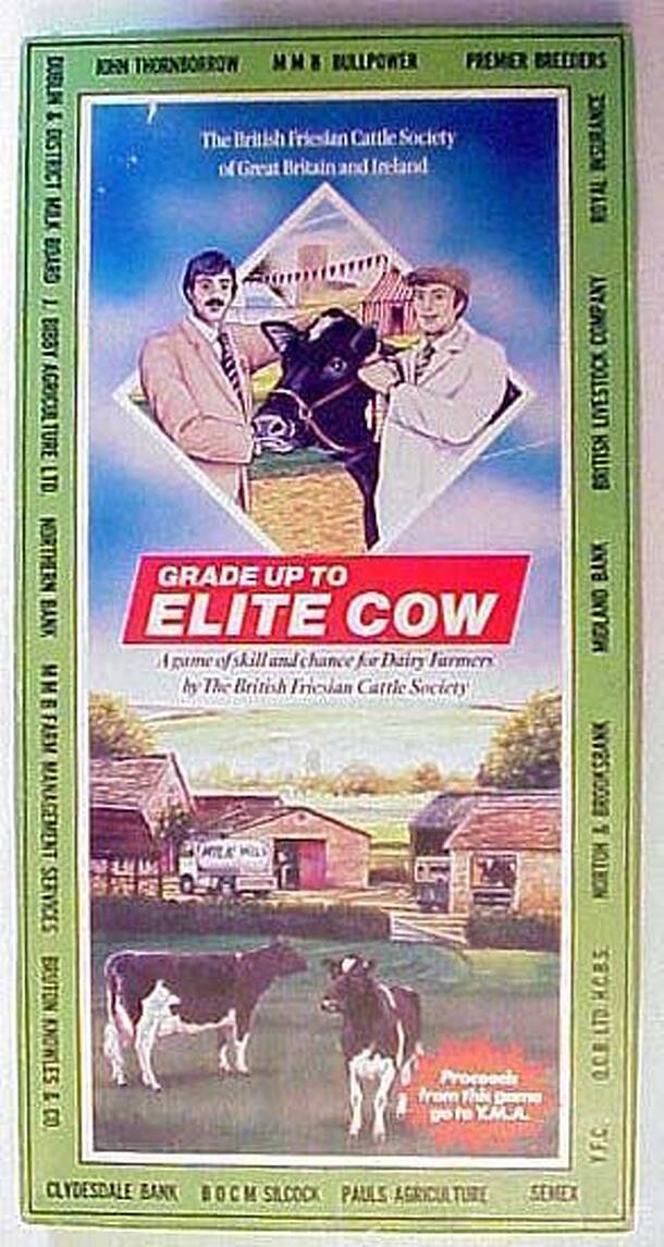 A promotional/educational game "of skill and chance for Dairy Farmers" made by Waddingtons of behalf of "The British Friesian Cattle Society of Great Britain and Ireland" as a fundraising exercise in which proceeds from the game went to the Y.M.A (Young Members Association) of the said Society. Players attempt to gradually "grade up" their mixed...