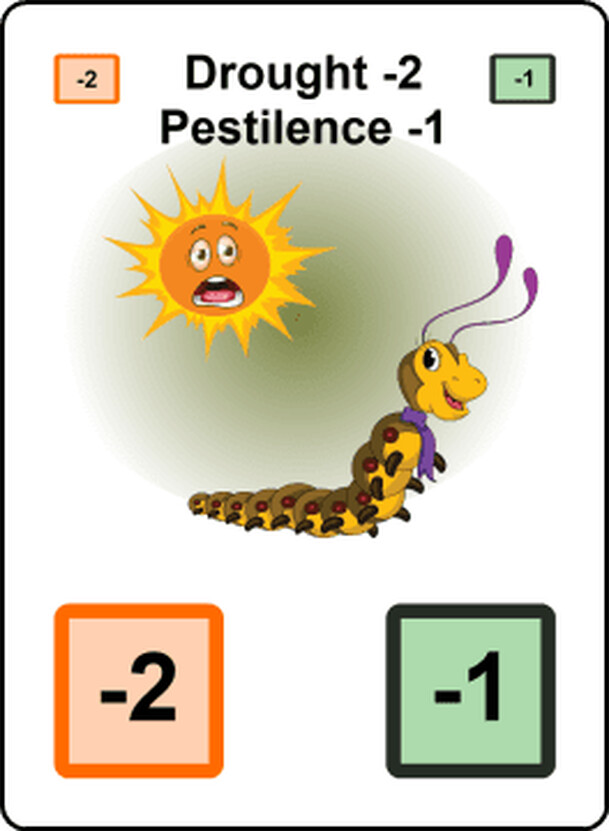 A Game of farming and chance for 2-5 players. Players create their field, and roll for rain and harvest. Watch out for the drought! It can suck away any rain you have and keep you from a profitable harvest. Will you overcome the challenge and chance of farming to have the most profitable farm around? To begin, players select crop tiles for their field....