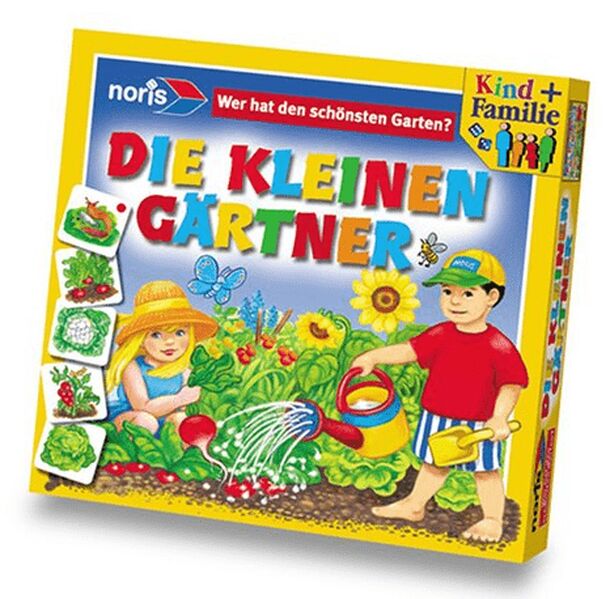 The children are little gardeners and try to have as good a harvest as possible in their garden. Each has his own garden with 9 squares, in the middle of the table there are 12x3 vegetable cards, 4 watering cans, 4 x weeds and 4 x parasites. One card after the other is turned over, vegetables are placed in the garden. So are weeds, for a parasite a...