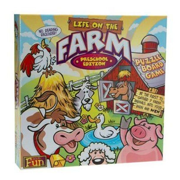From the publisher: Preschoolers love the happy animal scenes, deep colors and soft feel of We R FUN’s new preschool edition of “Life on the Farm”. Designed for the Ages 3 - 7 demographic, the soft non-toxic foam playmat (for floor play) is a huge 5-piece puzzle. When assembled, the playmate becomes the gameboard. Match colors to move - land on an animal...