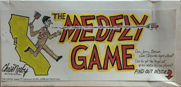 This satirical roll and move game for two players pits then and current California Governor Jerry Brown against the Mediterranean fruit fly, which first was seen in the state in 1975, and became a scourge to the state's agricultural industry in subsequent years. The spread of the Medfly created a political crisis in 1981 for Gov. Brown, and led to the...