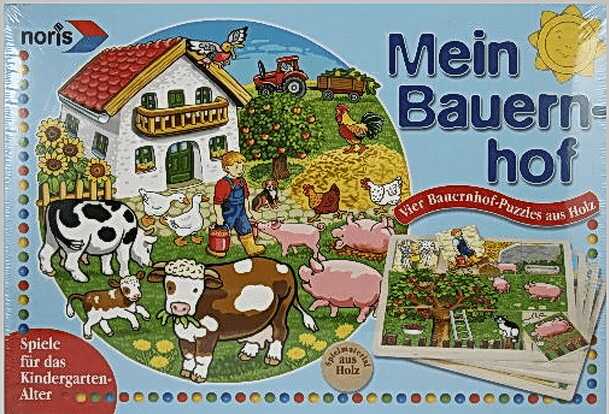 Four puzzles with farm szenes are put together to form a big picture, each puzzle has 12 parts. Each player receives a frame and in his move turns up one of the parts - if it fits into the picture the player takes it, otherwise it is put back. Contour drawings in the frame help to fit in the correct parts. The first player to complete his picture wins the...