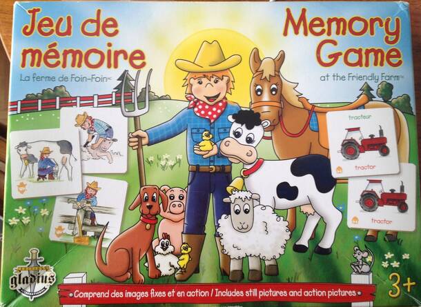 A new king of memory game, educational and more fun to play than conventional games, sure to please the youngest to the oldest players! Two ways to play for twice as much fun: combine identical pairs of picture discs or trios of discs identified with pictograms. With this two-for-one game, children will learn about the Friendly Farmer's daily activities...