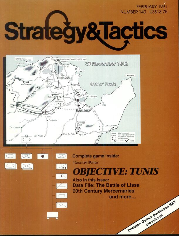Objective: Tunis is the sixth game in the "Battles for North Africa" Series. Originally published in Strategy & Tactics issue #140 (February 1991). The game is an Operational level simulation of the World War II battles fought during late 1942 between Axis and Allied forces for control of Tunis. Victory by the Allies would have led to Rommel's army in...